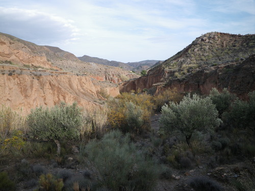 Antes de empezar la ruta cabe destacar la singularidad y situación geográfica del pueblo, encontrándose parte de su superficie en dos espacios naturales aparentemente tan opuestos como son el Desierto de Tabernas y el Parque Natural de Sierra Nevada. El río Nacimiento separa los dos macizos más importantes: a la derecha se encuentra el Montenegro con el pico más alto, el Galayo (1.710 metros), discurriendo por sus laderas el barranco de los Catalanes. En la margen izquierda se sitúa el macizo del Mencal, con la cruz del Mencal (933 metros). Iniciamos la marcha por una estrecha vereda limitada a la derecha por un barranco que termina en la rambla del río Nacimiento. Desde aquí tenemos una perspectiva aérea impresionante, pudiendo contemplar las vegas y huertos que van quedando a nuestra derecha (hacia el río). Tras 35 min. Llegamos a la Rambla de los Yesos y ascendiendo por esta llegamos a algo que parece una presa y que es el salto del cauce del propio río hecho con piedras. Allí se encuentra el área recreativa “Salto del caballo”. Tras una breve parada, continuamos ascendiendo por el lecho del río, que a partir del merendero se convierte en un cañón entre los barrancos que quedan a un lado y a otro del cauce del río. Éste ha ido erosionando con el paso de los años la tierra del cauce y podemos contemplar una lección viva de geología de tipo kárstico: variedad de rocas, surcos, derrumbes, caprichosa figuras que forma los yesos en las paredes del río, areniscas, etc. Tras 45 min. Andando por la Rambla llegamos al desvío donde empezamos ascender por un sendero hasta coger unas pistas (25 min. De ascenso). Andamos por las pistas durante 45 min. Y nos desviamos por otro sendero el cual nos hace regresar por encima de los cerros con hasta llegar a la Ermita del Santo Cristo en Alboloduy donde terminaríamos la ruta (1 hora.)