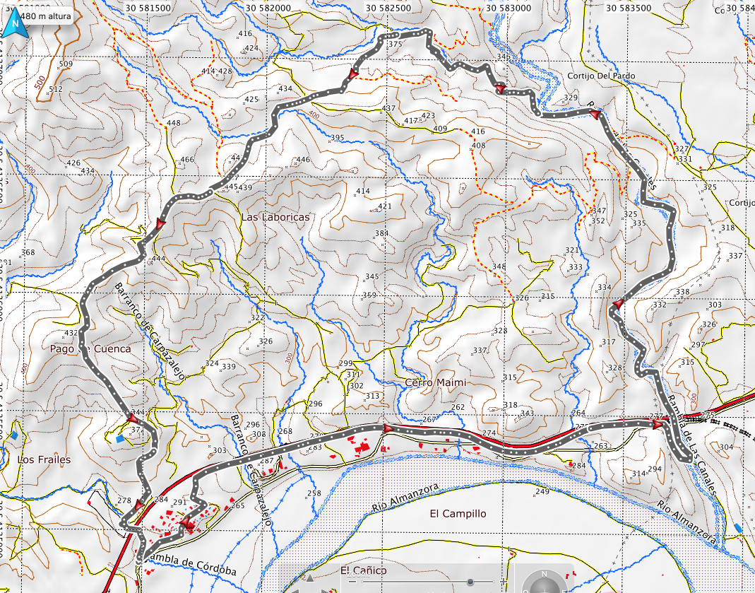 Iniciamos el sendero desde La Cueva, pedanía de Arboleas y cogemos un camino paralelo a la carretera A 334 hasta salir a la Rambla de Las canales por la cual ascendemos hasta llegar a un barranco que nos sale a nuestra izquierda. Desde aquí el camino va cogiendo altura por el barranco entre olivares y vegetación típica de esta zona (lentiscos, algarrobos) hasta salir a un cortijo donde recuperamos de nuevo la pista. En la sombra que deja este espectacular algarrobo haremos una parada para tomar el aire y descansar un poco. Desde aquí hasta el collado de las laboriosa apenas nos supone un pequeño esfuerzo. En el collado bajamos dirección al punto de partida por el PR. de Limaria, siguiendo en todo momento su trazado. Entramos de nuevo en La Cueva por la Rambla de Córdoba.