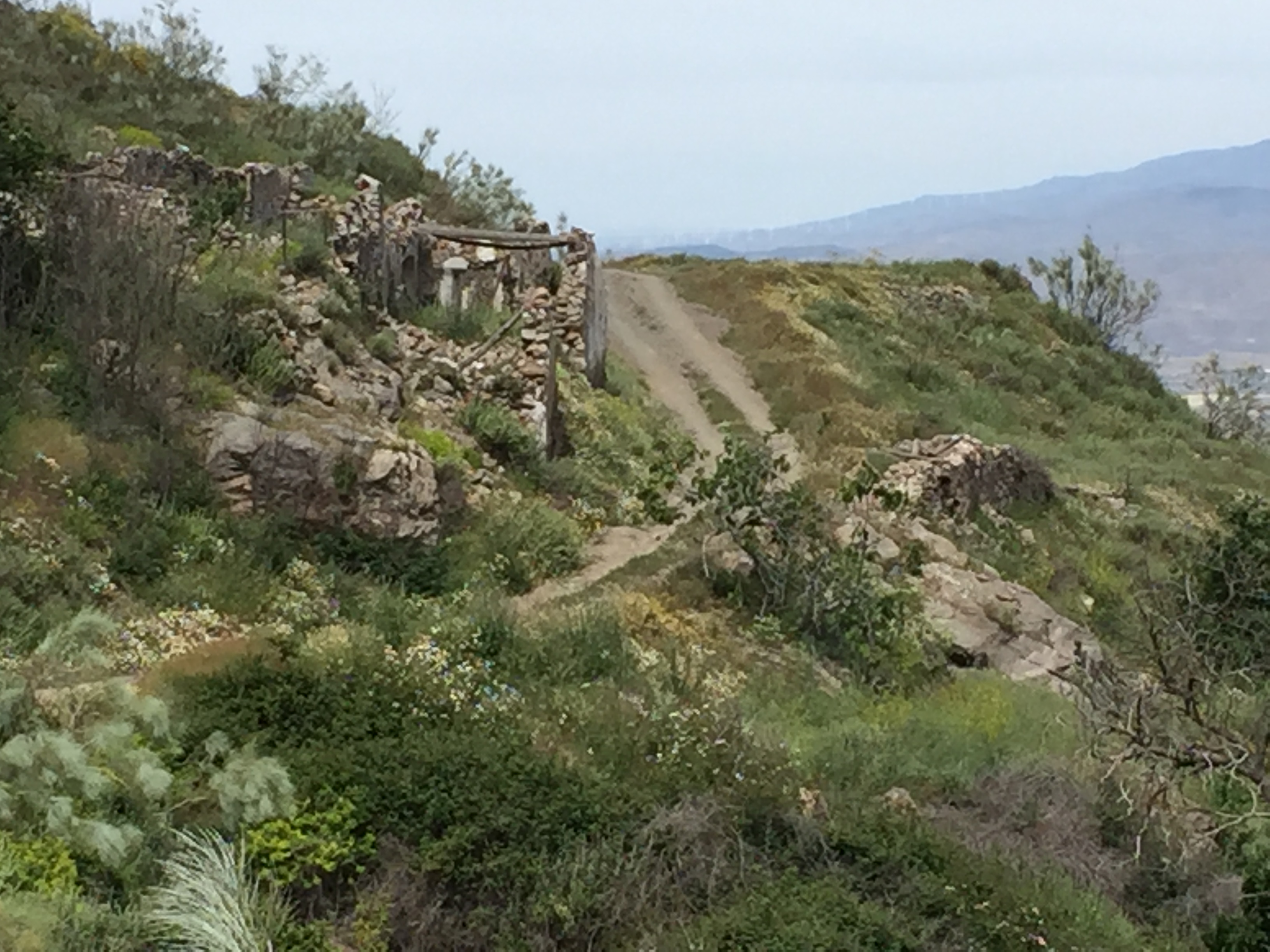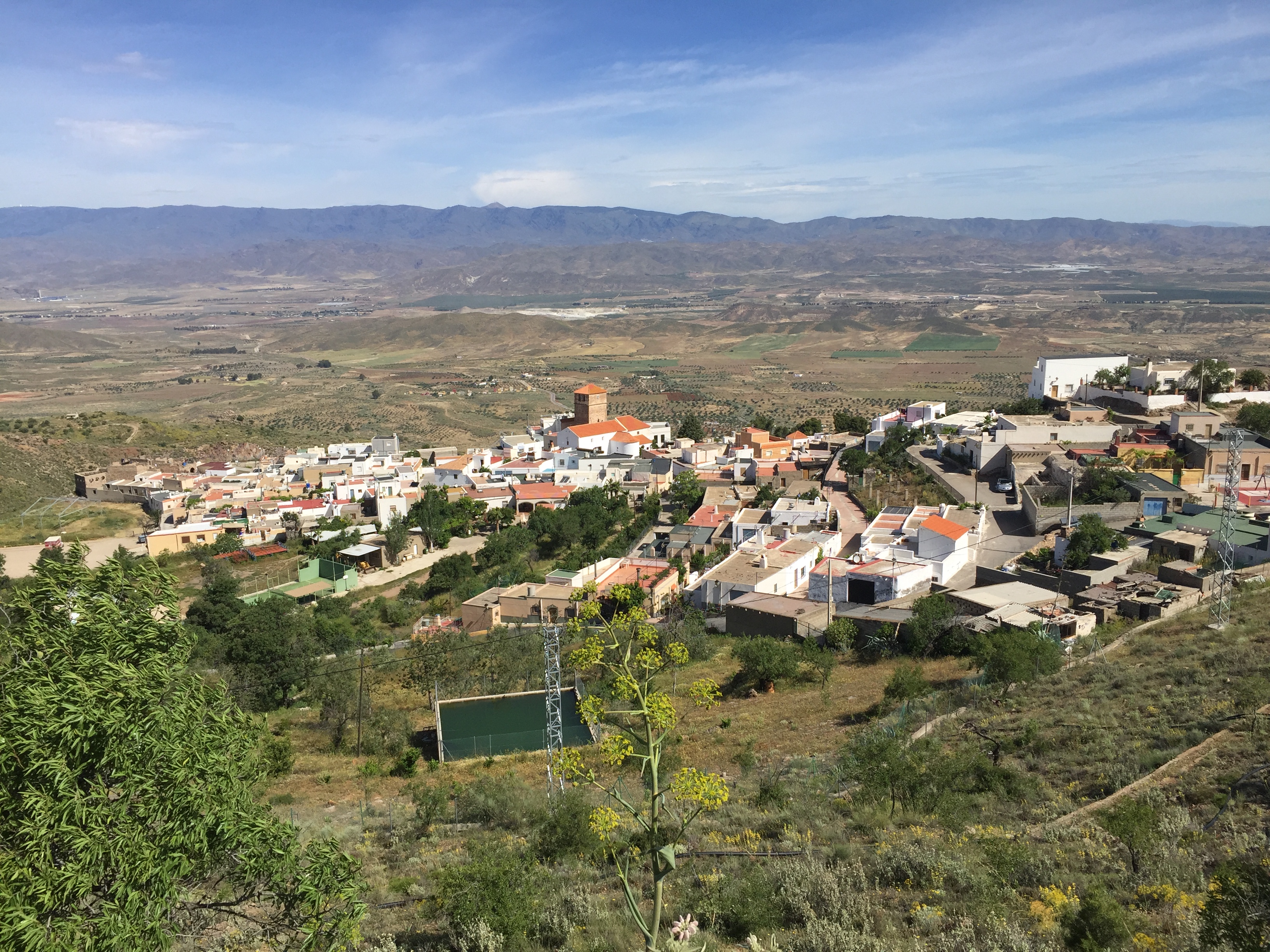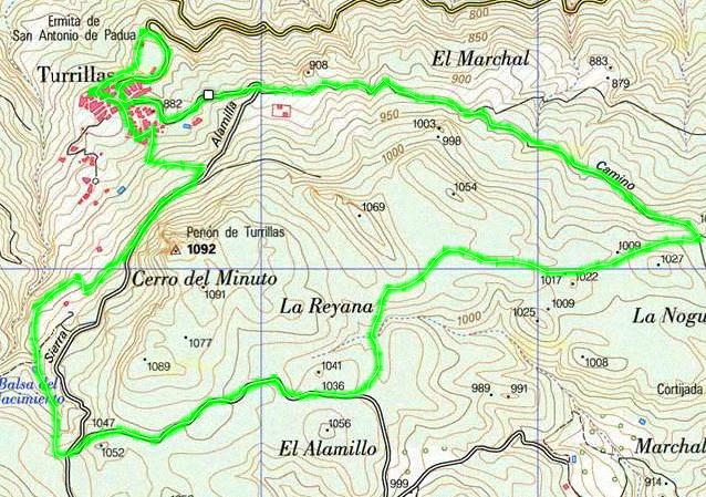 La historia de Turrillas va unida a la de su vecino municipio de Níjar, la taha de Níjar en la época musulmana. Tras la expulsión de los moriscos, siglo XVI, Turrillas quedó deshabitada, recuperándose gracias a los pobladores, mayoritariamente procedentes de Murcia. Iniciamos la ruta en la puerta del Ayuntamiento de Tabernas. Desde allí nos vamos a dirigir hacia la Ermita de San Antonio, patrón de la localidad. La ermita de San Antonio, situada a las afueras de Turrillas, nos ofrece una simpática construcción. La torre-fortaleza, construida en el siglo XVI testigo de batallas entre moros y cristianos, al igual que en las poblaciones del interior. Iremos a través del camino que va desde la Ermita hasta de nuevo al pueblo, para callejear un poco, hasta llegar a la Parroquia de Santa María construida en el S. XVI, de estilo mudéjar y que conserva parte del techo desde su construcción. Tras callejear un poco más, iniciamos la primera subida, dirección hacia el Peñón, por el sendero de las Cucas. Al llegar a la carretera, subimos de nuevo un poco más hasta iniciar una bajada hasta llegar al sendero de la Loma del Perro, que será por senda, cubierta de variedad de flora, acompañándonos ya la vista de los primeros molinos de viento. Al coronar, a la altura del Paraje de la Laguna, tomamos la pista que atraviesa todo el parque eólico de la Noguera. Al poco nos desviamos por una pequeña pista, ya llaneando, y desde la cual podremos observar a lo lejos, Mesa Roldán, la zona de Cabo de Gata, y Sierra Cabrera. De nuevo llegamos a la pista que atraviesa el parque eólico, desde aquí podremos observar prácticamente todo el campo de Tabernas y parte de Sierra de Los Filabres. El sendero es un gran mirador natural. Llegamos de nuevo al Sendero de las Cucas, ya en sentido descendente pasando pasando junto diversas construcciones tradicionales en desuso, como son balates, balsas, cortijos, eras, navajos, etc. Entramos de nuevo en casco urbano, pasando de nuevo por la Iglesia pasando por el Mirador de Turrillas terminando la ruta, con una invitación por parte del ayuntamiento.